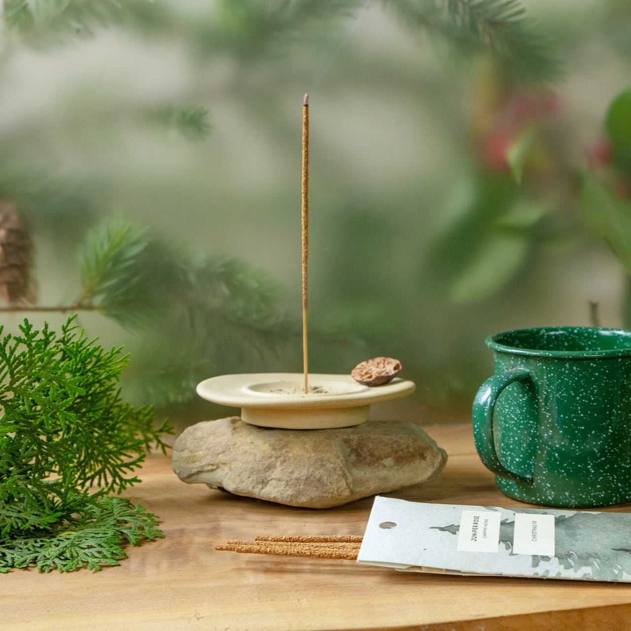 クリスマスファーキャンプファイアーインセンスは、パシフィックノースウェストの鬱蒼としたモミの森を、燻る煙と共にあなたの部屋に運んでくれるインセンスです。砕いた針葉のタンギーな樹脂、湿った森の林床の香りをお楽しみください。